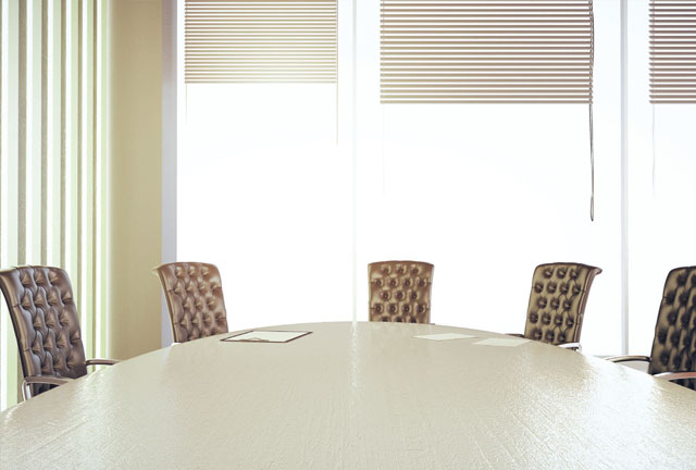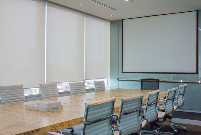 Meeting room with Commercial blinds that offer privacy, protection from the light and a stylish vibe to the space.