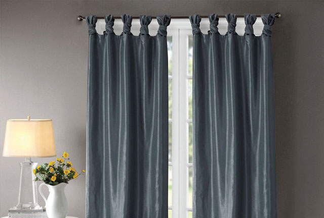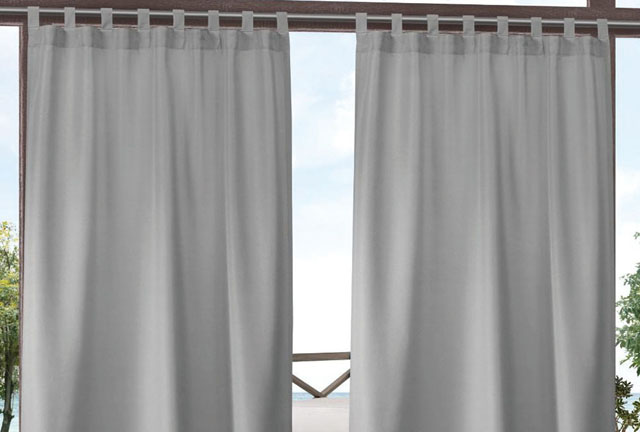 Tab Top drapes can add interest to any room without sacrificing simplicity. Here in minimal, gray style.