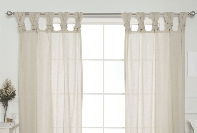 Tab top drapes will give your modern or country home a casual, relaxed look. Opt for red color to create contrast.