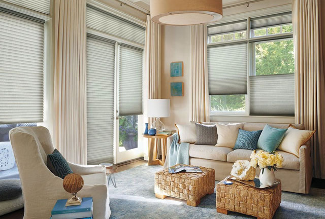 Cellular shades are popular due to their crisp style and versatility. They can add personality to the living room.