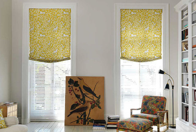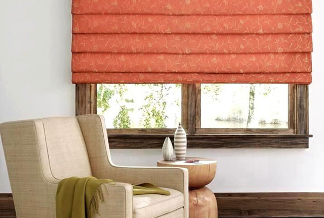 Our classy patterned orange Unconstructed shades can play with colors and create interesting effects in the room.