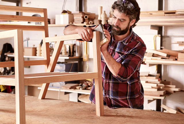 Our furniture designers carefully manufacturing a chair frame. Our team is working on each piece to its very last detail!