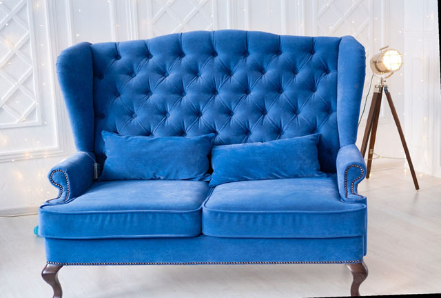 A beautiful vintage blue settee. We specialize in crafting top quality custom pieces only from the finest materials.