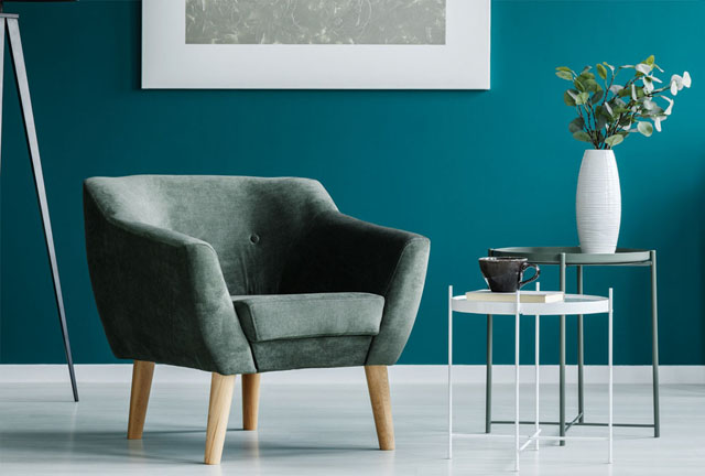 Customized green armchair in a minimal living room interior. Best prices & with fastest delivery in New York.